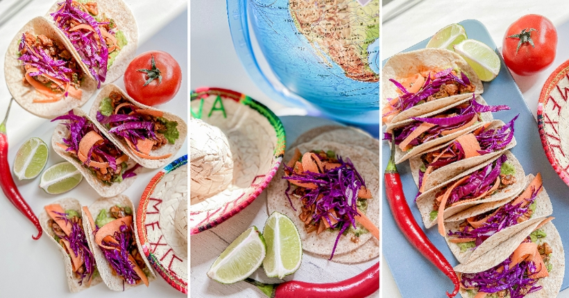 А по што е најпозната мексиканската кујна? По зачините. Нема да верувате колку нивната храна е зачинета, десетици видови на чили: од најблаго од отров луто, но и тоа има некаков шмек. Јас лично не преферирам толку зачинета храна, па мојот рецепт е инспириран, но прилагоден, модериран и балансиран. Одбрав да правам такоси, затоа што се една од најчестите улични храни што ги јадев. Таму најчесто ги прават само со печурки, пченка и лајм, но јас направив една моја верзија на полнење со ореви. Се надевам дека ќе ви се допадне.