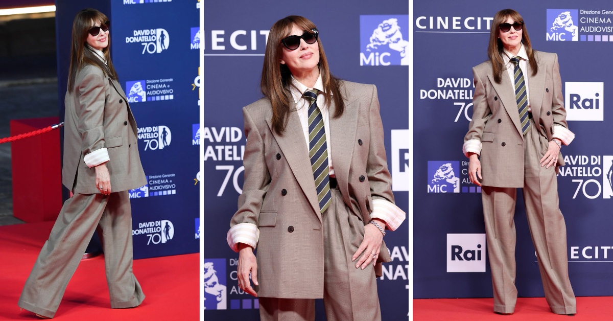 На доделувањето на филмските награди „David di Donatello“ во Рим, италијанската филмска ѕвезда се појави во класичен костум од Saint Laurent, искомбиниран со бела кошула со риги и вратоврска и изгледаше моќно и софистицирано.