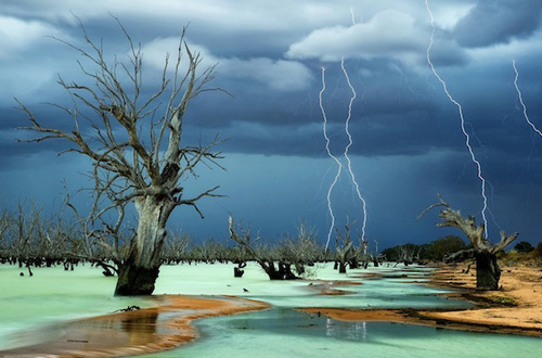 Прекрасната глетка е фотографирана во Нов Јужен Велс, Австралија. Млечно зелената вода е природен феномен предизвикан од електромагнетската активност од молњите кои ја „удираат“ површината на водата.