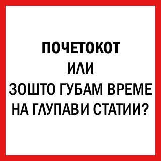 Ако пресметам колку време во денот губам на читање глупости на интернет (не можам да дадам одговор на прашањето зошто кликнувам на такви статии, како што не можат да го сторат тоа ни поголемиот дел од вас), досега ќе беше минимум двапати прочитана целата едиција од Достоевски која ми фаќа прав и сите грижливо купени и заборавени книги на полиците, кои чекаат подобри времиња, во кои јас нема да бидам затрупана со обврски, а екранот нема да ме мами сочно со новата боја на Хурем Султан.