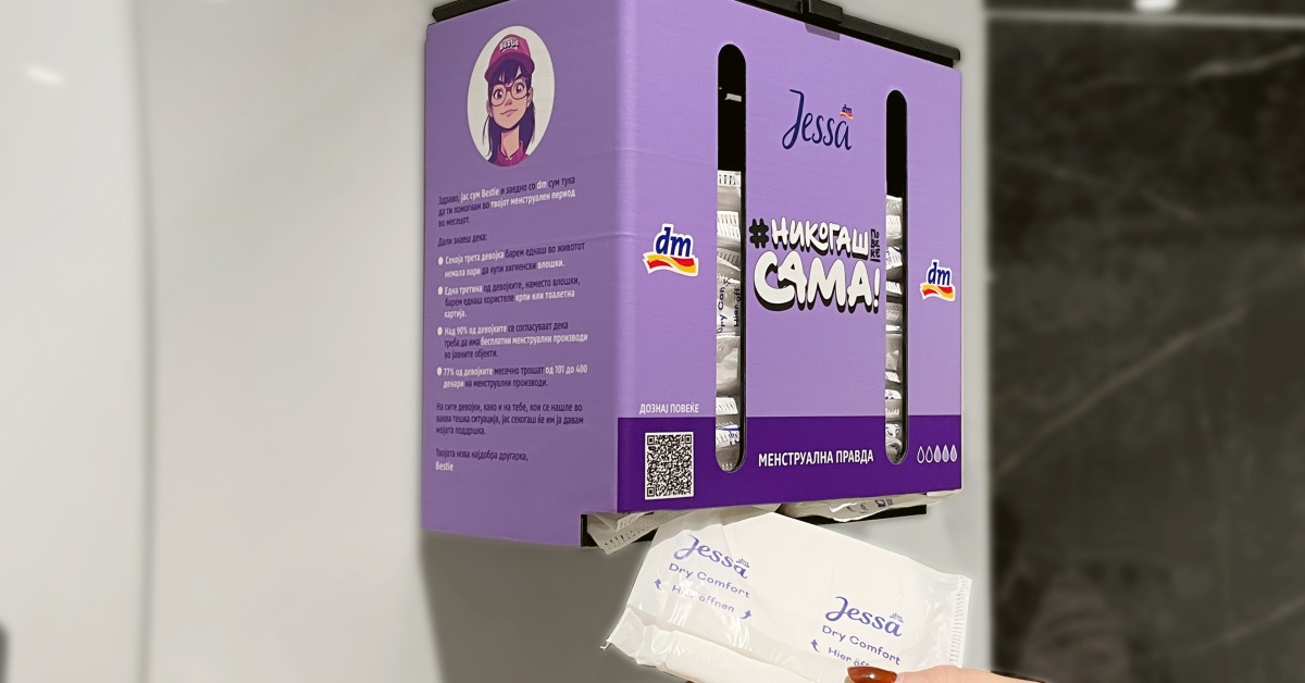 „Здраво, јас сум Бести и со мене никогаш повеќе не си сама!“ – вака гласи пораката на иновативната и инспиративна кампања на dm drogerie markt која не само што ја осветли важната тема за менструална хигиена, туку и ја подигна свеста за менструалната правда во нашата земја. Со донација на повеќе од 200 диспанзери минатата година и повеќе од 100.000 хигиенски влошки на сите државни факултети, dm покажа дека грижата за жените и нивното здравје е приоритет. Оваа година, тие продолжуваат со полна пареа со снабдување на универзитетите со нова количина од речиси 130.000 хигиенски влошки од приватната марка Jessa за новиот семестар. Со ова, вредноста на овој проект досега изнесува речиси 2 милиони денари.