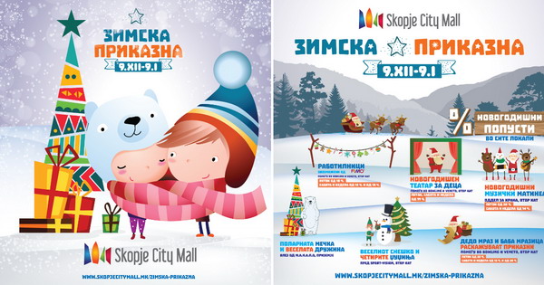 Овој период од годината сите ја чувствуваме еуфоријата на Новата година и божиќните празници и се радуваме на магијата на светилките и украсите. Нашиот најголем трговски центар Skopje City Mall нуди една волшебна атмосфера за сите посетители кои ќе уживаат во пазарењето кое во овој месец е најактуелно, и ја заокружи успешната година со уште еден во низата настани кои ги организираше во текот на целата година. Свесни дека овој период од годината сите најмногу купуваме подароци, City Mall останува верен на своите потрошувачи и нуди неверојатни предновогодишни попусти кај поголемиот дел од закупците.
