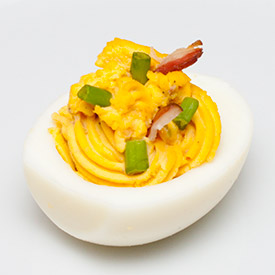 Полнетите зачинети јајца се многу популарни во светот затоа што се приготвуваат брзо и можат да се зачинуваат со најразлични додатоци, па се прилагодуваат на сечиј вкус. Постојат стотици вкусни варијации на ова јадење, а во продолжение ќе најдете две од нив.