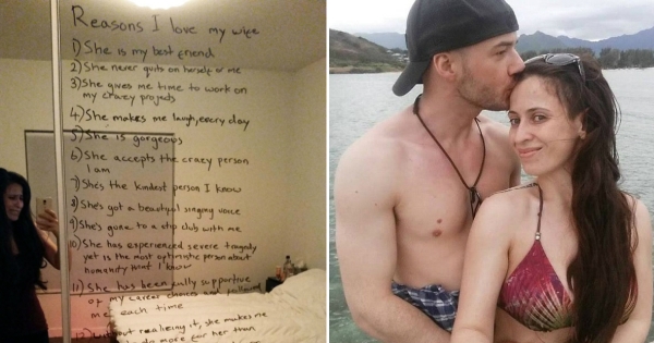 Грижлив сопруг ѝ остави на огледало прекрасна љубовна порака на својата сакана која се бори со депресија. Тој ѝ наброја 15 причини зошто ја сака за да ѝ пружи поддршка и љубов во најтешките моменти од нејзиниот живот.