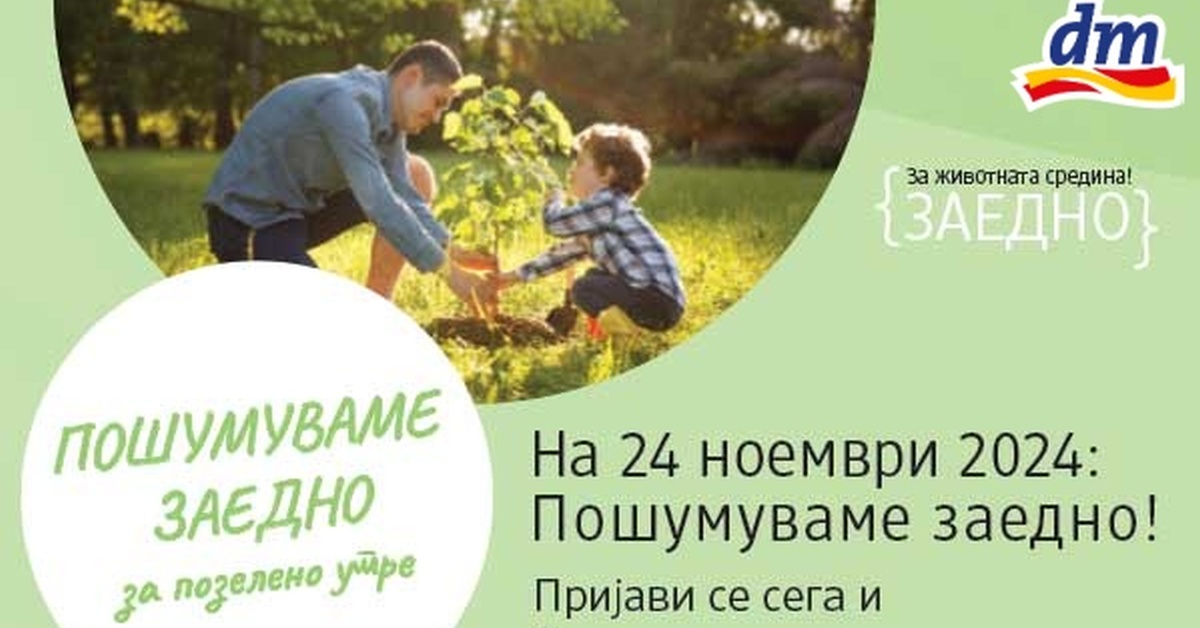 Компанијата dm со гордост ви го најавува третото продолжение на еко-проектот „Пошумуваме заедно за позелено утре“! Овој проект тие го започнаа во 2022 година, а до сега посадија речиси 60.000 нови садници. Оваа година имаат за цел да ја стигнат спектакуларната бројка на 100.000 засадени дрвја!
