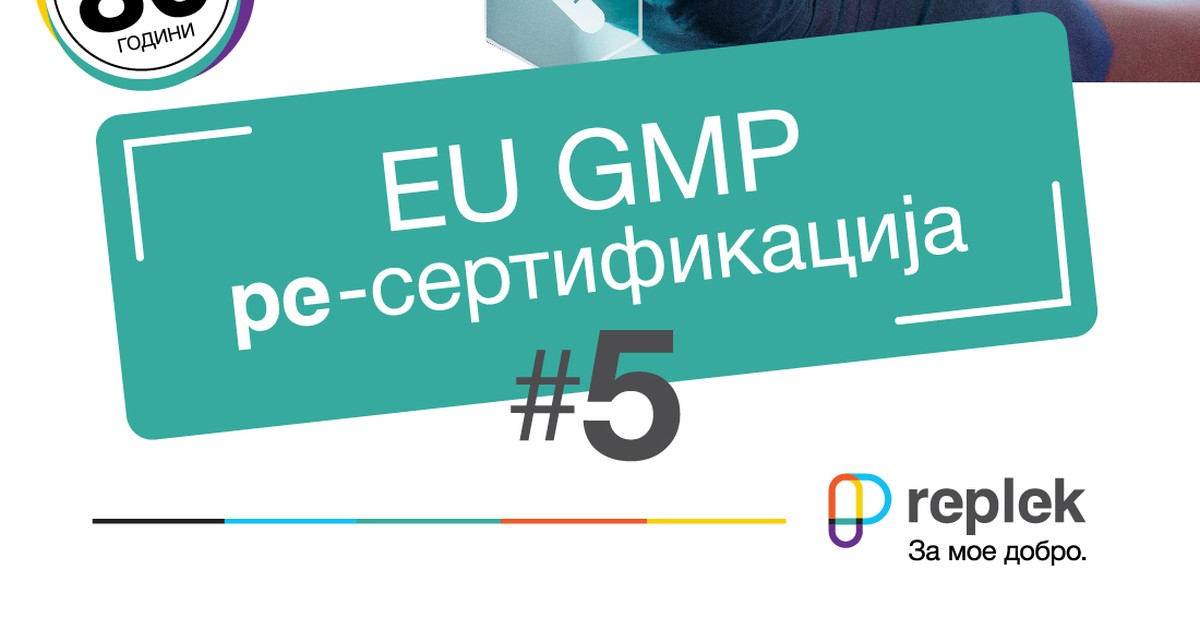 „Реплек“ по петти пат ја потврдува својата усогласеност со највисоките европски стандарди за квалитет, безбедност и добра производна пракса. Најновото сертифицирање со EU GMP сертификатот е доказ за континуираната посветеност на компанијата кон унапредување на производствените процеси, што ја потенцира нејзината доверливост и професионалност во секоја фаза од производството. Новиот, петти по ред, EU GMP сертификат вклучува проширување на опсегот на производството со три нови форми, и тоа супозитории, вагитории, како и гранулати за орална употреба (сакети). Ова е потврда на континуираното проширување на капацитетите со нови фармацевтски форми, што е резултат на интензивни инвестиции во модернизација на производствените линии, примена на најсовремени технологии, како и постојано усовршување на вработените.