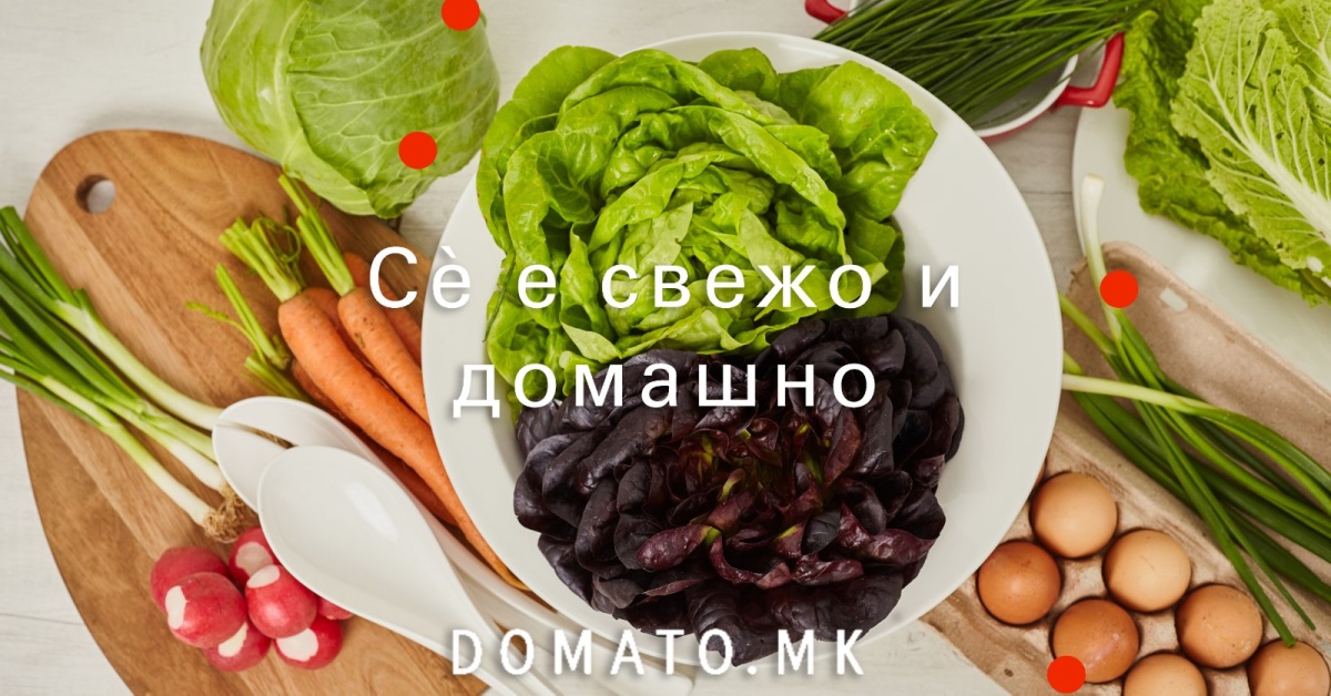 Во фокусот и филозофијата на Domato.mk се свежите и сезонски овошја и зеленчук и здравата и органска храна создавана и одгледувана со љубов. Наша специјалност се и прехранбените продукти и вина произведени во Италија, па ве каниме да пазарувате со задоволство и да бирате од стотици внимателно селектирани и проверени производи, без воопшто да го напуштите домот.