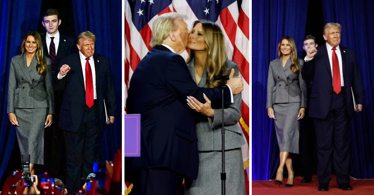 Повторно прва дама на САД: Меланија Трамп во префинет стајлинг за рака со Доналд по неговата победа