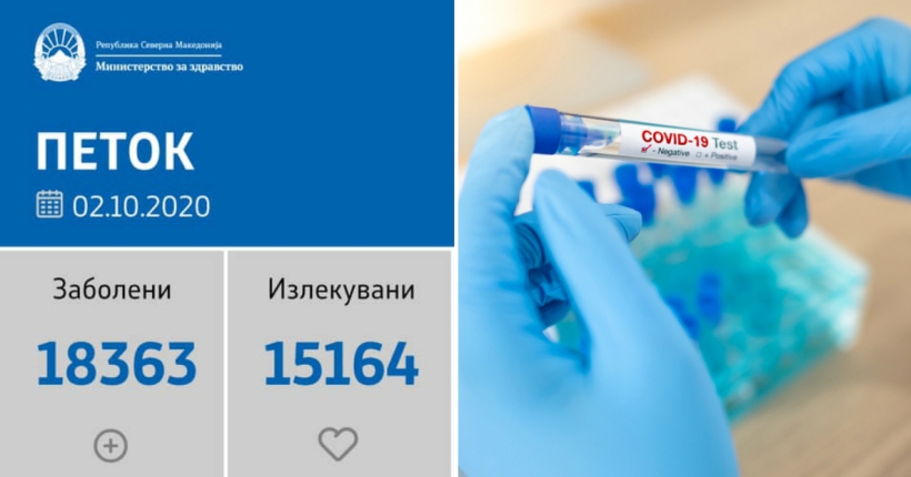 Вкупната бројка на ковид дијагностицирани во нашата земја од почетокот на епидемијата изнесува 18.363, бројката на оздравени пациенти е 15.164, на починати е 749, а во моментов бројот на активни случаи во земјата изнесува 2.450.