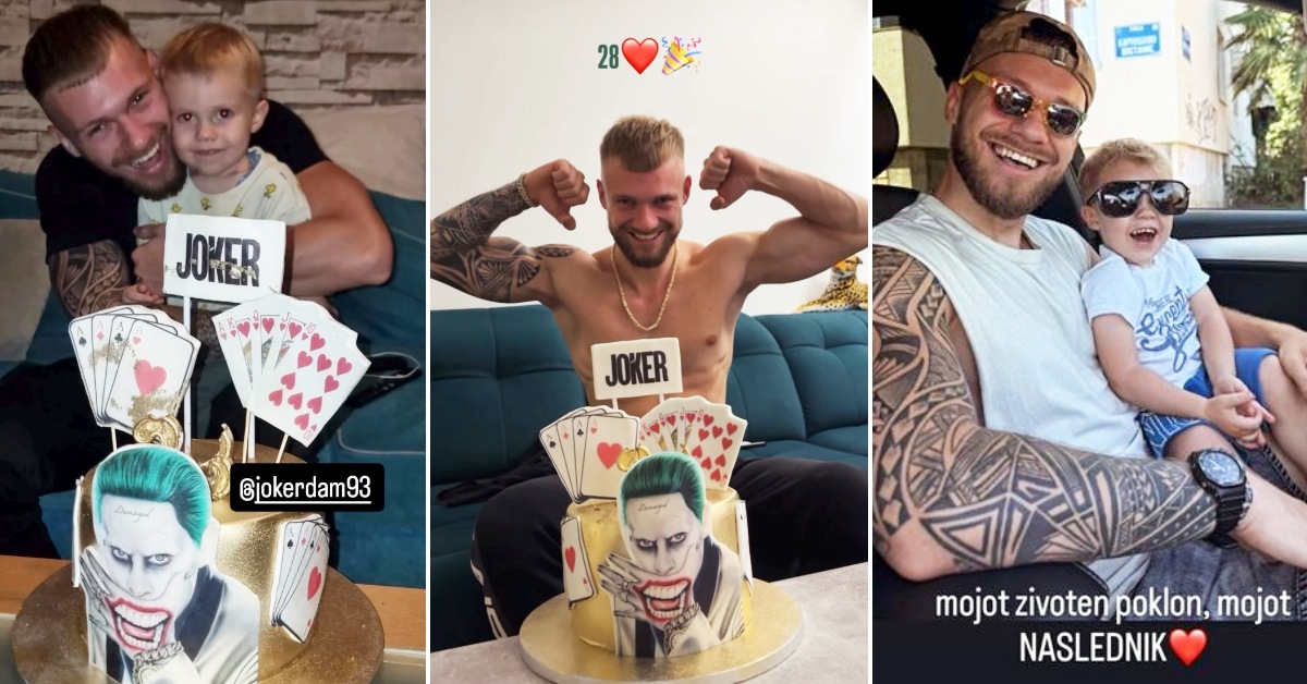Позира со синчето и тортата со Џокер: Сопругот на Антониа Гиговска го прослави 28-миот роденден