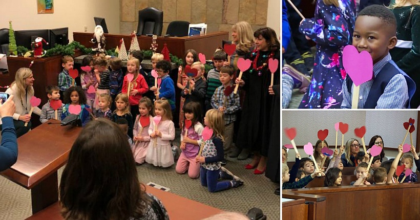 Додека судијката ја соопштуваше конечната одлука за посвојувањето на 5-годишниот Мајкл, зад среќното детенце седеа сите негови другарчиња од градинка со рачно изработени срца во рацете.