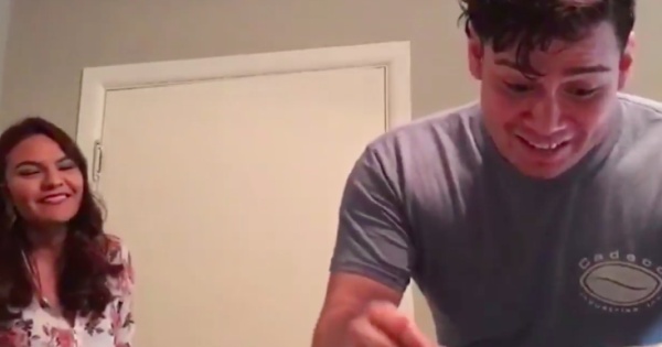 Видео од маж, кој дознава дека неговата сопруга е бремена со нивното прво дете, ќе ве исполни со позитивни емоции.