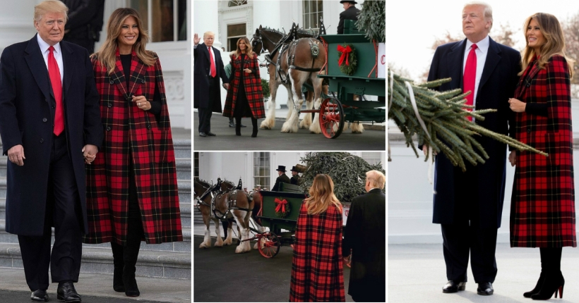 Меланија и Доналд Трамп рака за рака се движеа околу кочијата која ја донесе елката висока 6 метри.