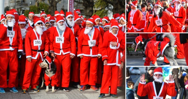 Празничната еуфорија денес во Скопје ја засилија над 300 лица, кои облечени во црвени костими го најавија доаѓањето на новогодишните и божиќните празници.