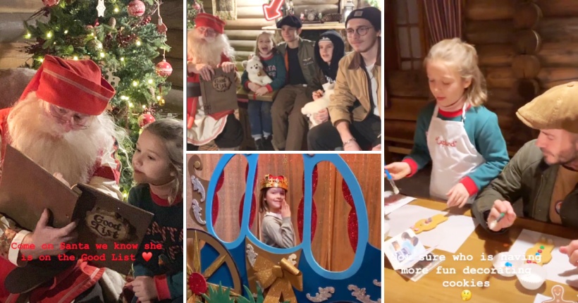 Славниот пар заедно со синовите Бруклин, Ромео и Круз и ќеркичката Харпер учествуваа во забавна божиќна претстава и декорираа колачиња, за време на нивната посета на паркот „Lapland UK“.