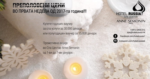 Во периодот на празници, Спа Центар Anne Semonin ви овозможува во текот на оваа недела да ја набавите вашата годишна или полугодишна картичка, по промотивни цени.