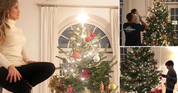 Празничната магија стигна и до Џенифер Лопез и Алекс Родригез. Популарната актерка и пејачка сподели со своите фанови како изгледаше украсувањето на големата елка.