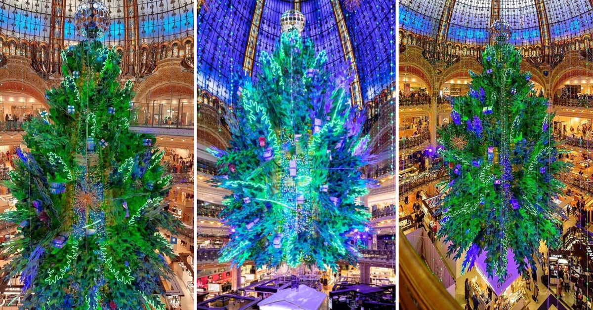 Во Galeries Lafayette во Париз се издигна сосем нова новогодишна елка. Сред луксузниот трговски центар беше поставено лебдечко дрво кое ќе ги воодушевува и маѓепсува сите посетители за време на празничниот период.