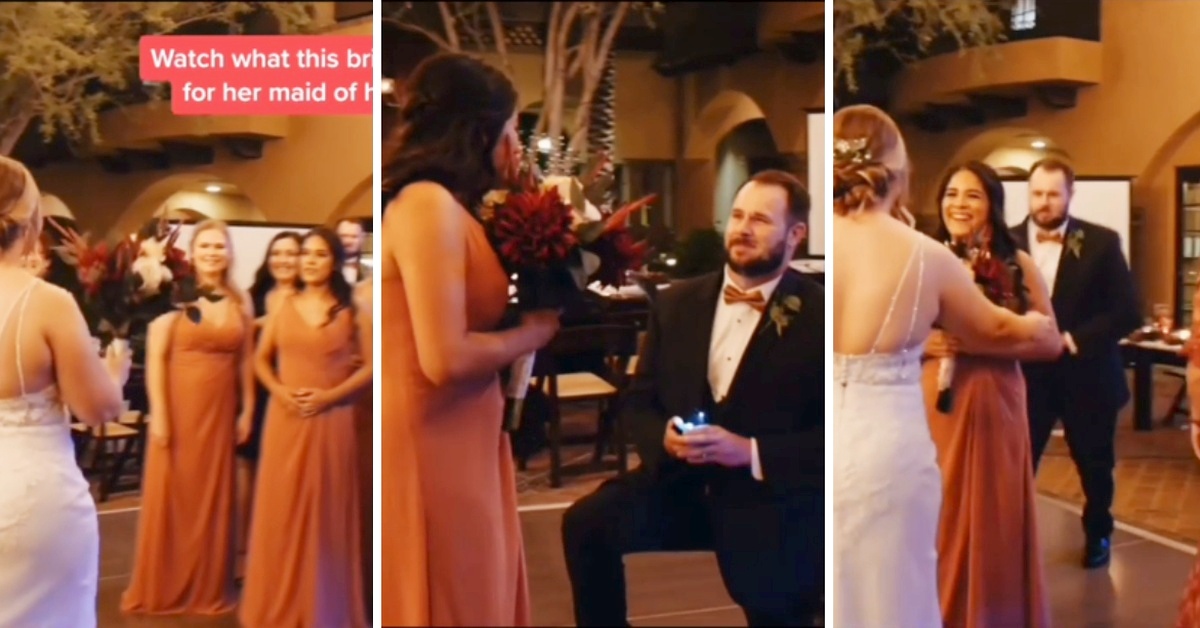 Предлог за брак сред свадба: Невеста ѝ го подари бидермаерот на другарка си пред момчето да ја изненади со прстен