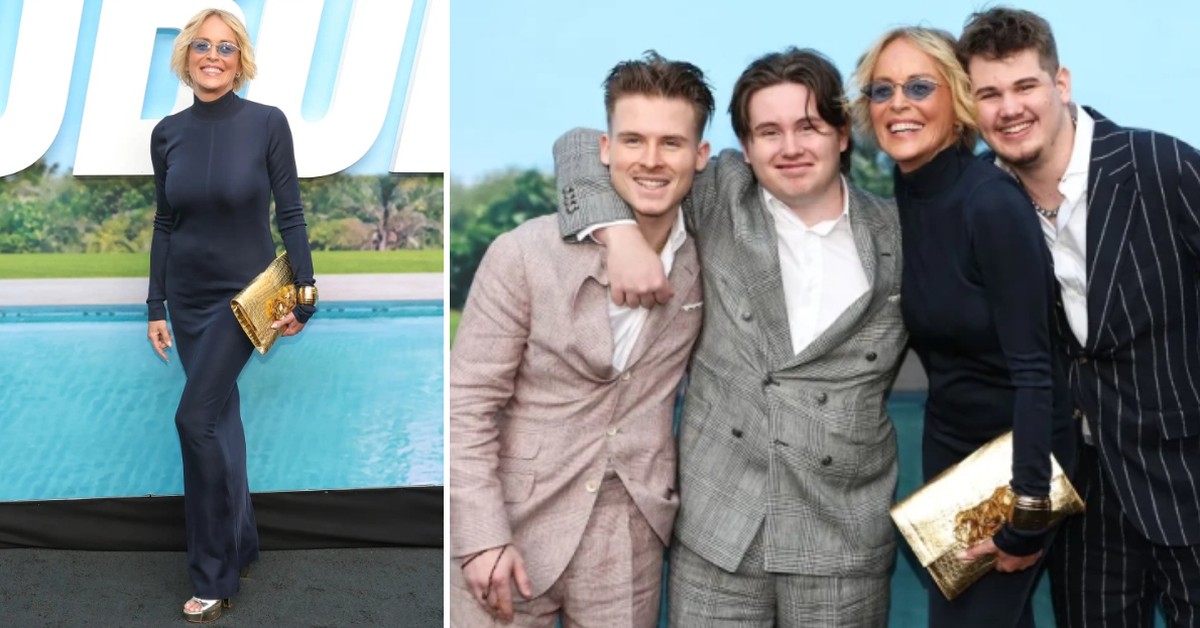 Префинет сексапил: Шерон Стоун атрактивна и кога е покриена до грло, блеска покрај трите сина