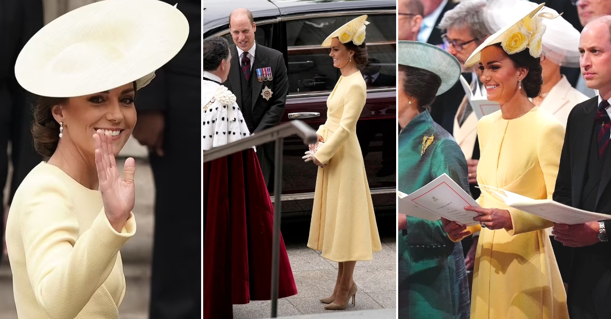 40-годишната припадничка на британското кралско семејство блесна во жолт стајлинг од нејзината омилена дизајнерка Емилија Викстед и шапка од Филип Трејси. Нивните три деца нема да присуствуваат на службата.