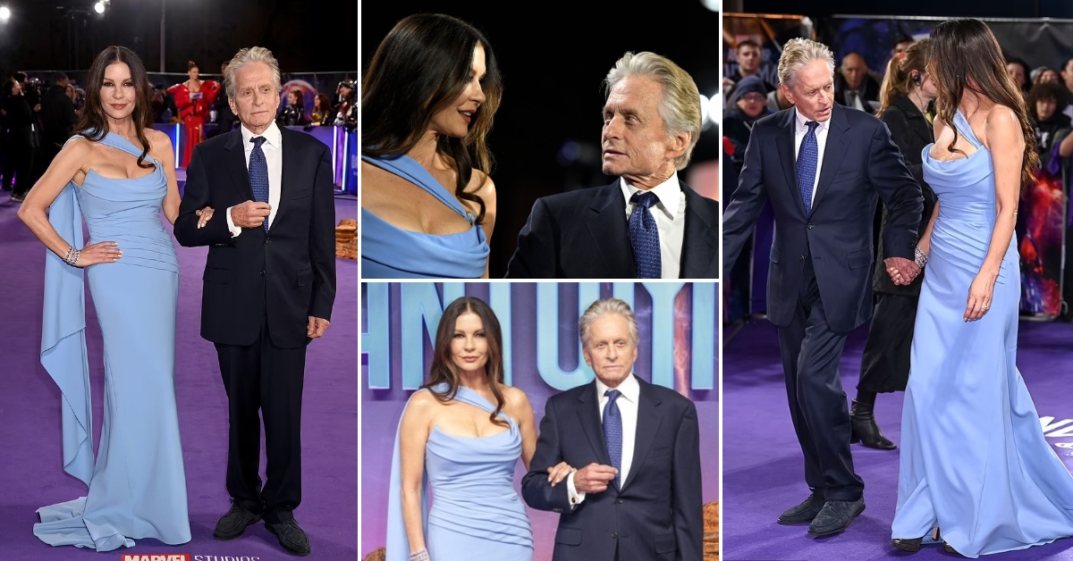 53-годишната актерка изгледаше елегантно во сина креација од Кристина Отавијано и накит од Шопард. Таа го придружуваше сопругот Мајкл Даглас кој е дел од актерската екипа во филмот базиран на стриповите на Марвел.