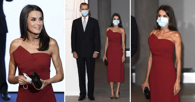 47-годишната припадничка на шпанското кралско семејство, која е поранешна новинарка, мамеше воздишки во црвен асиметричен фустан од Роберто Терета. Во својот стајлинг, Летиција додаде обувки од Маноло Бланик и чантичка од Ботега Венета.