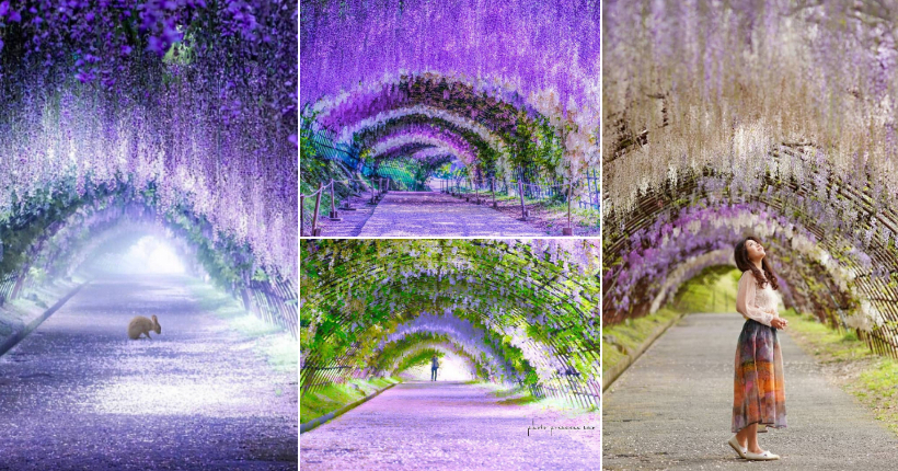 Цветниот тунел Вистерија во бајковитата градина „Кавачи Фуџи“ и оваа пролет ги остава посетителите без здив.