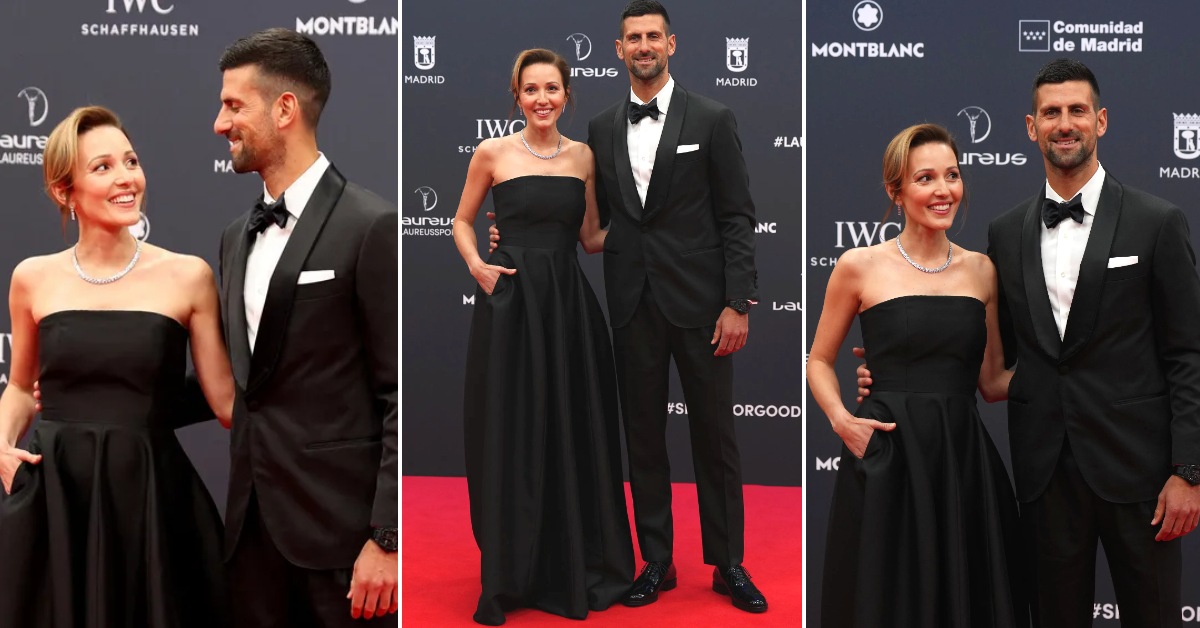 На црвениот тепих во Мадрид, 36-годишниот српски тенисер се појави во црн костум, додека неговата 37-годишна сопруга изгледаше префинето во црна креација со џебови и накит од Cartier.