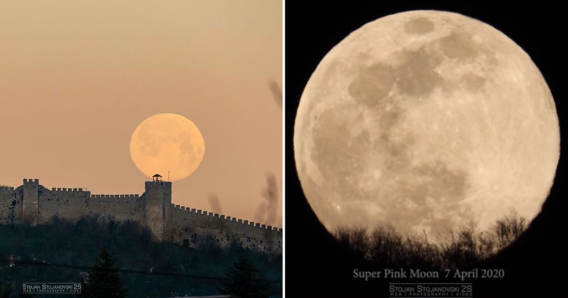 Феноменот познат како розова Супермесечина синоќа го осветли небото.