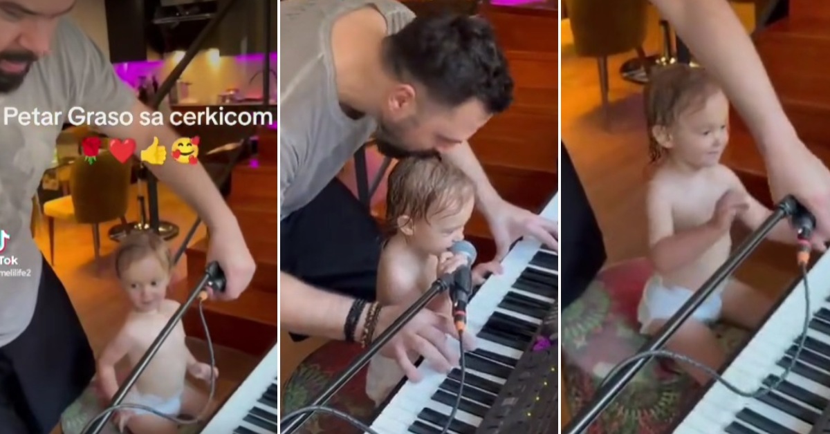 Во видео споделувано на социјалните мрежи, 48-годишниот пејач стои покрај неговата 2-годишна ќерка Алба која го пее неговиот хит „Ako te pitaju“. Нејзиниот талент е очигледен.