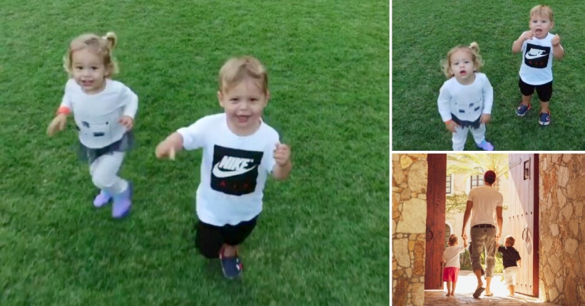 38-годишната поранешна тенисерка објави видео од 2-годишните близначиња кои ги има со 44-годишниот пејач. Малите Луси и Николас се прикажани како трчаат на тревник по дрон.