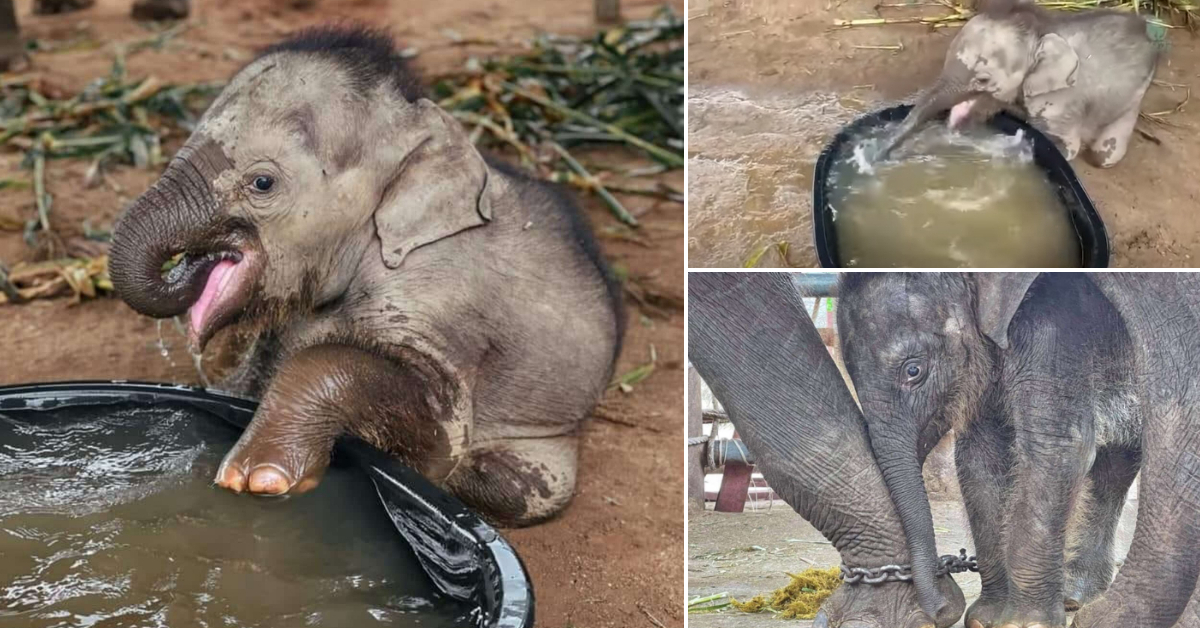 Преслатко: Бебе слонче ужива во првото бањање по спасувањето од заробеништво во Тајланд
