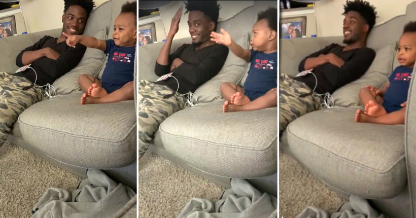 Сладок разговор меѓу татко и син стана хит на социјалните мрежи. Тоа што бебенцето зборува на неразбирлив „јазик“ не го спречува таткото да му возвраќа како да го разбира.