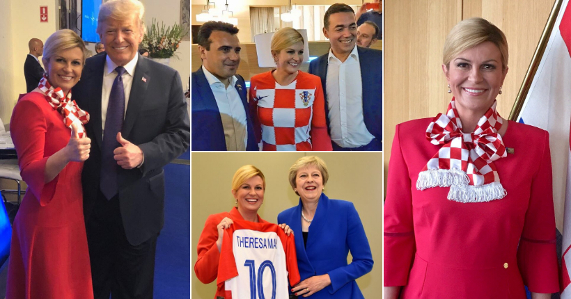 Претседателката на Хрватска страсна фудбалска навивачка од Брисел, му подари дрес на Трамп и доби честитки од Заев