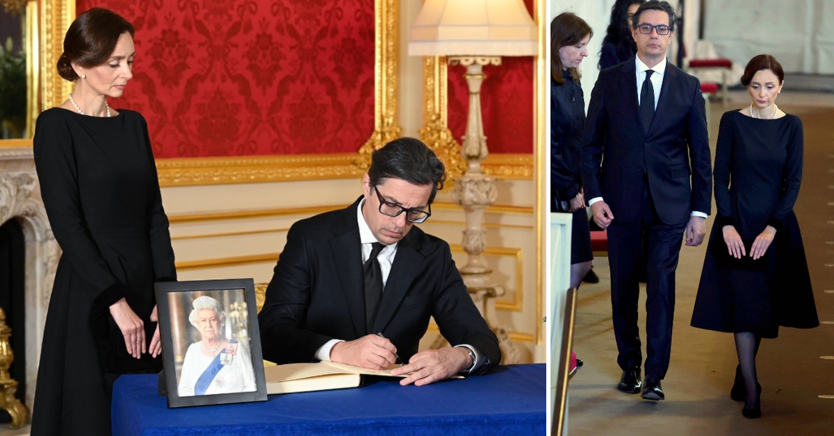 Претседателот Стево Пендаровски и првата дама Елизабета Ѓоргиевска ѝ оддадоа почит на кралицата Елизабета II