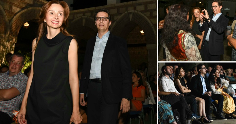 56-годишниот Претседател и 47-годишната Прва дама на Северна Македонија седеа покрај Атиџе Муратова, која ја има главната улога во филмот.