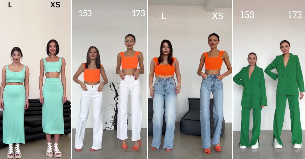 Едната девојка е висока 173 сантиметри и носи алишта со конфекциски број XS, висината на втората девојка е 153 сантиметри, а конфекцискиот број на третата пријателка е L. Во видеата, тие една покрај друга пробуваат исти модни комбинации за да покажат како истите ќе стојат на различни форми на тело.