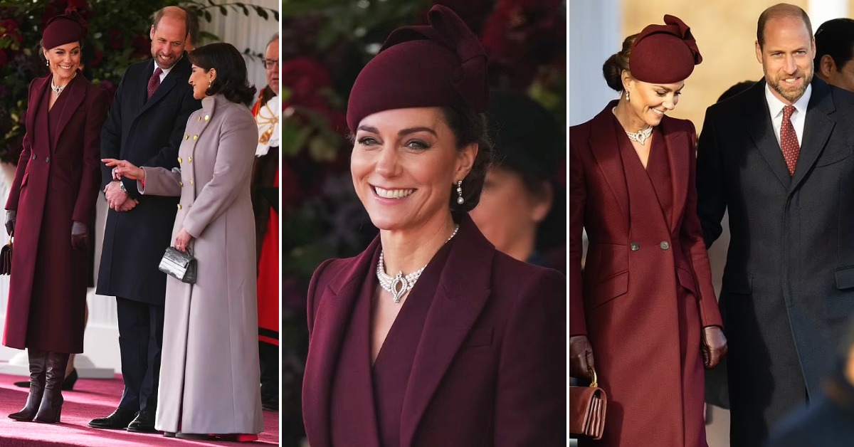 42-годишната принцеза на Велс му се придружи на принцот Вилијам во пречекот на емирот на Катар, шеикот Тамим бин Хамад ал Тани, и на неговата сопруга Џавахер. Ова е првиот толку значаен настан на кој присуствува Кетрин по откривањето на дијагнозата во март оваа година.