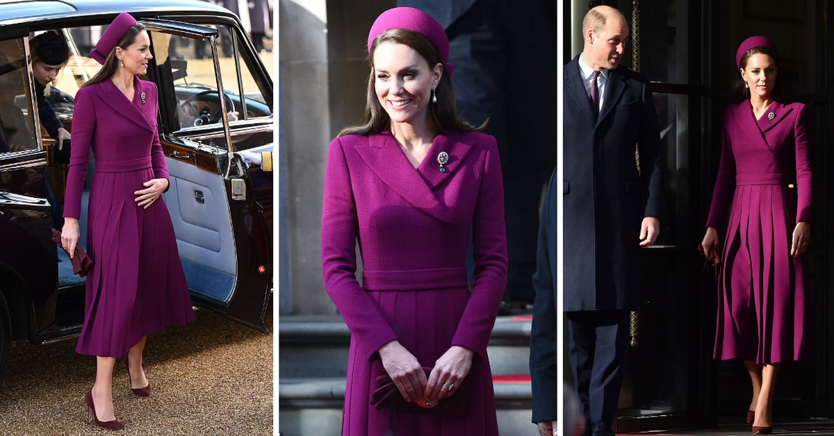 Нејзиниот моден избор вклучуваше палто-фустан од Емилија Викстед, шапка од Џејн Тејлор, салонки од Џанвито Роси и чантичка од Малбери.