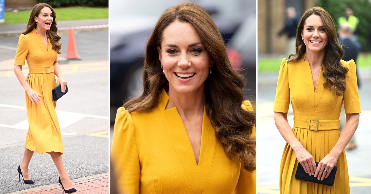 41-годишната припадничка на британското кралско семејство не разочара ниту при посетата на гинеколошко-акушерско одделение во болница во Сари. За пригодата, таа избра плисиран миди фустан во бојата на есента. Жолтата креација чини 220 фунти, а е дело на дизајнерката Карен Милен.