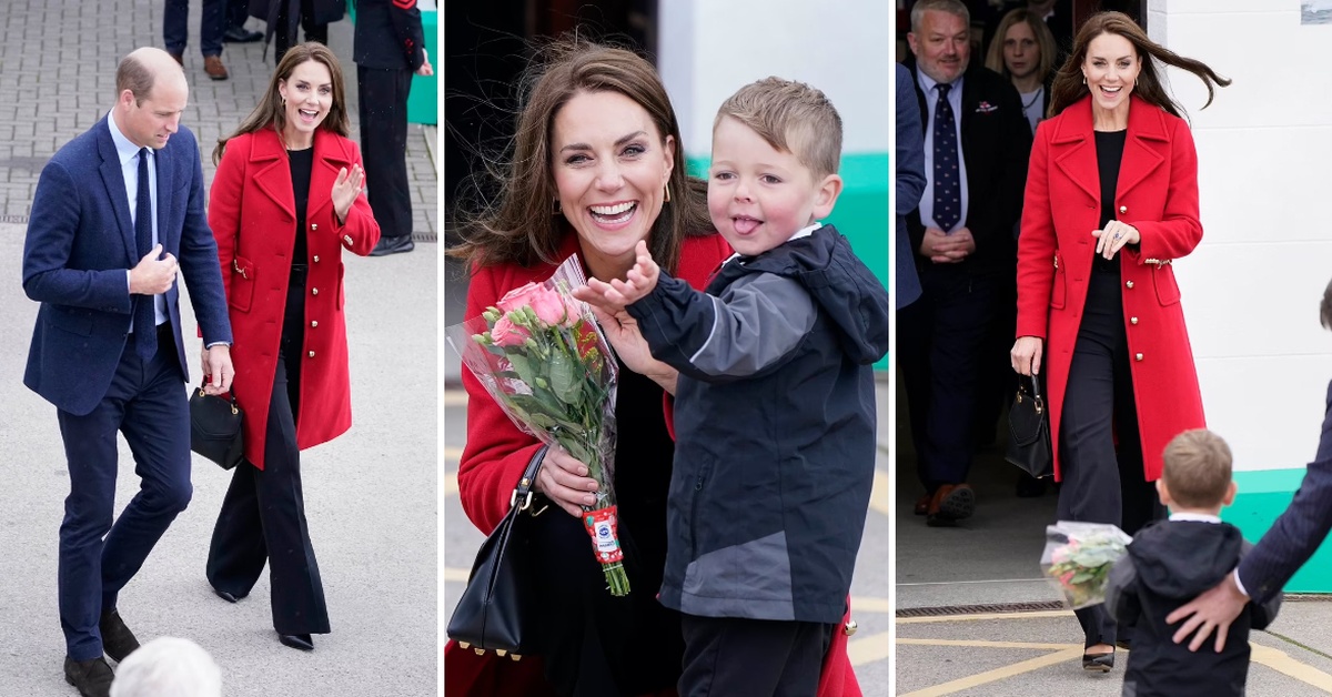 Принцезата Кетрин во црвено палто покрај принцот Вилијам за првата посета на Велс по новите титули
