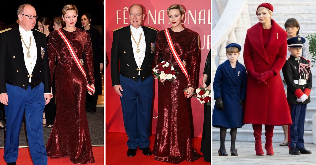 На денска прослава за овој празник, принцезата од Монако беше облечена во црвено од глава до пети. Покрај неа беа близначињата Жак и Габриела.