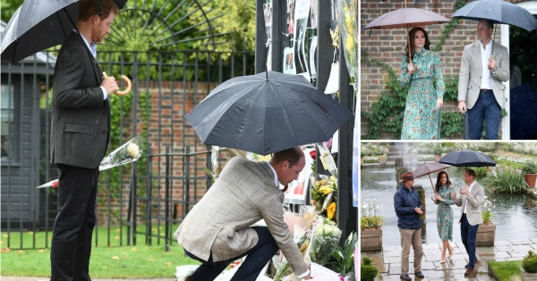 Принцовите положија цвеќе пред портите на Кенсингтонската палата, на истото место на кое со голема тага положија букет цвеќе и пред две децении, по трагичната несреќа во која ја изгубија својата мајка.
