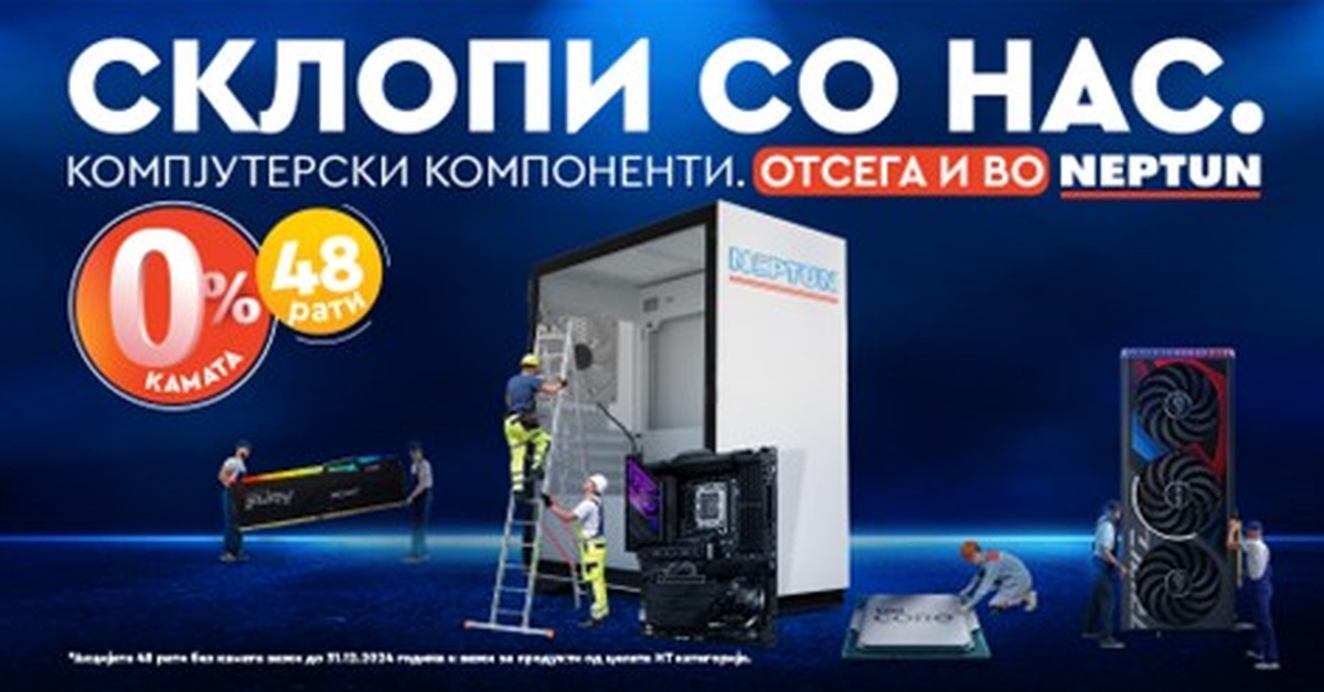 Имаме нешто ново што ќе ве воодушеви! Нептун сега ви нуди компјутерски компоненти – совршени за сите кои сакаат да склопат моќен гејминг компјутер или ултра-брз сетап. Од врвни процесори и графички картички, до брзи RAM мемории и SSD уреди, бескомпромисни матични плочи и моќни напојувања - сè е тука и сè е подготвено за вашата следна авантура.