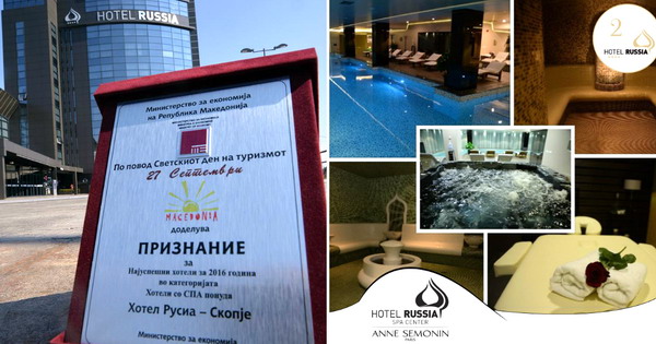 Признание за најуспешен хотел со спа понуда доби и хотел Руссиа. „Перцепциите на клиентите во врска со квалитетот на нашите услуги се засновани на долгорочни проценки кои обезбедуваат позитивна емоционална реакција кон спа услугите. Обезбедувањето задоволство е наш стратешки императив. Со позиционираноста на хотел Руссиа се надевам дека ќе допринесеме Скопје и Македонија да се најдат на светската туристичка мапа, а градот ќе биде препознаен не само како историска и културна атракција но и како активна и спортска метропола за многу повеќе интернационални доживувања“ – изјави генералниот менаџер на хотел Руссиа, м-р Јелена Костадиновиќ Танев по повод добивањето на ова признание.