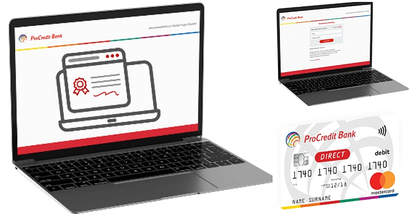 Како и досега, ПроКредит Банка и понатаму продолжува да Ви нуди 24/7 услуга преку дигитални канали кои овозможуваат непрекината услуга директно од Вашиот дом/канцеларија.