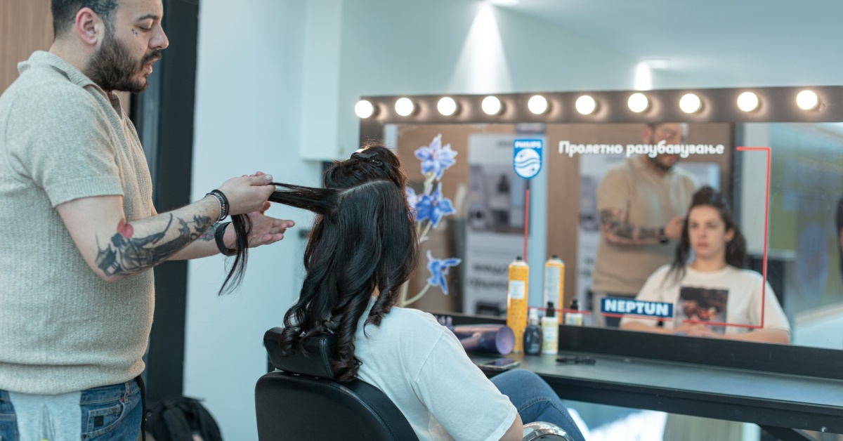 Пролетното разубавување во „Нептун“ веќе започна. Голем број жени викендов во продажниот салон на „Нептун“ во Ист гејт мол уживаа во вештините на познатиот стилист Бојан Сејменоски кој им овозможи прекрасни пролетни фризури благодарение на иновативните фенови и пегли за коса на Philips. Задоволството од финалните резултати беше очигледно.