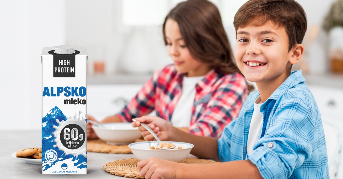 Децата често се доста пребирливи во изборот на храна, но добрата вест е дека со мали промени, може да се збогати исхраната на децата со протеини. Според податоците од студијата National Health And Nutrition Examination, ужините или јадењето меѓу главните оброци сочинува околу 30 проценти од дневните калории кај децата. Затоа за повеќе протеини најлесно е да се интервенира токму во ужините во кои ќе се додаде протеинското млеко на Алпско. Со 15 g протеини во една чаша, протеинското млеко на Алпско преставуваат доста лесен извор на протеини за децата, а покрај тоа детскиот организам го снабдува и со калциум. Млекото може да се искобинира со овошје, путери од јатки, дополнително и со некој засладувач или да се додаде во овесна или оризова каша за да биде уште попримамлив оброк за деца.