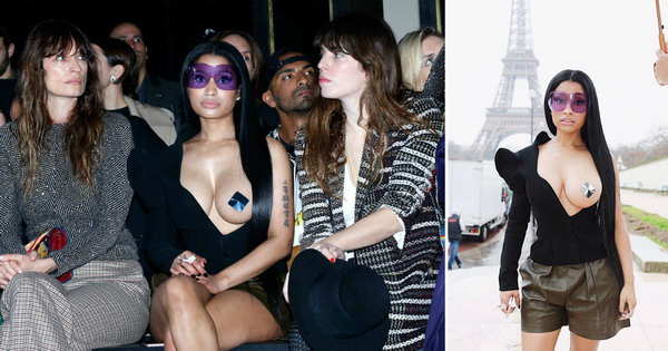 Ники Минаж се потруди да не остане незабележана на Париската недела на модата. Популарната раперка се појави на шоуто на Хајдер Акерман во креација која буквално ја разголи нејзината лева града.
